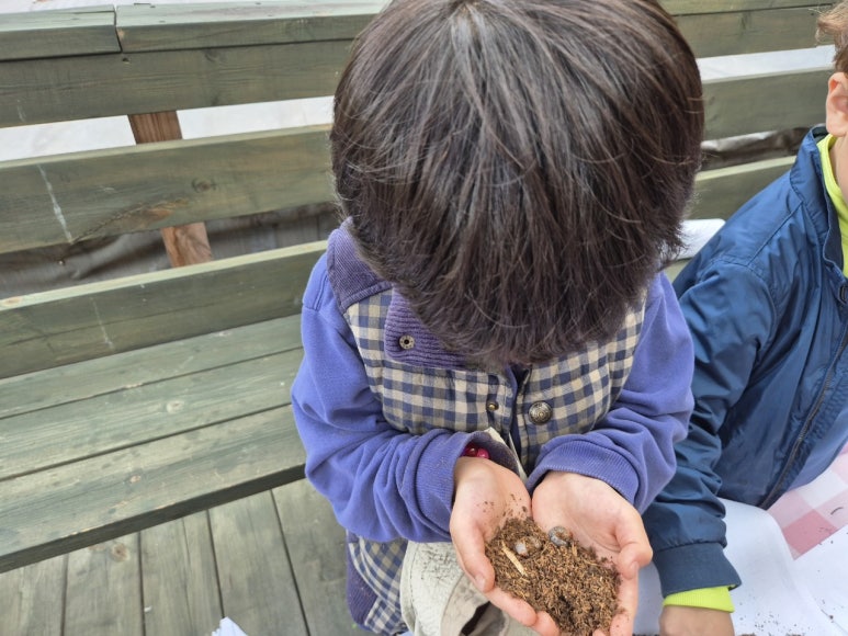 아이들은 “우와! 이게 뭐예요?” 하며 눈을 반짝였고, 작은 생명 하나에도 호기심 가득한 눈빛으로 바라보는 모습이 참 사랑스러웠어요.
